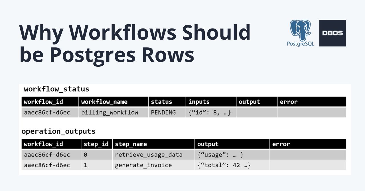 See how backing workflows with Postgres simplifies operations, enables built-in recovery, and makes failure handling automatic.